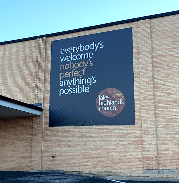 Advertise your next big event, create a custom backdrop, or hang a sign outside your church with our versatile custom Vinyl Banners, printed single-sided full color. These are sturdy 13oz scrim vinyl banners. This matte finish material looks great indoors but is designed to stand up to the elements outdoors.  * Minimum of 10 sq ft per banner. Hemming on all sides and grommets every 24” is standard.
