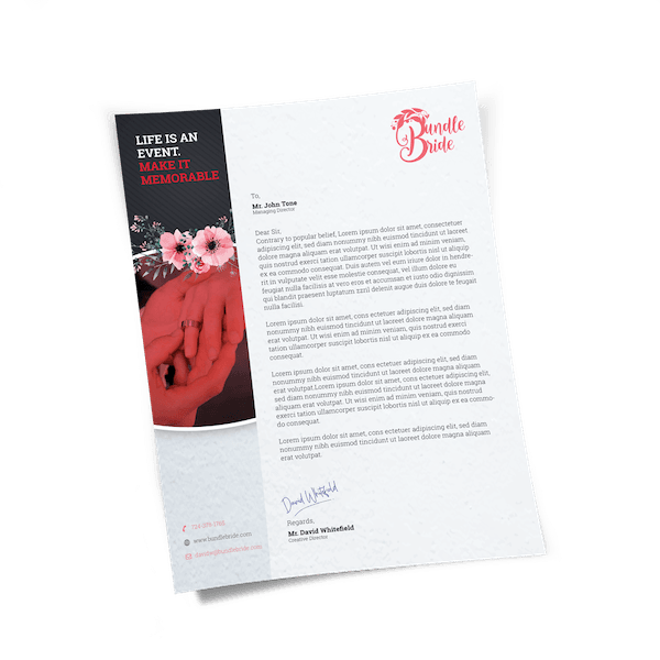 Our custom Letterhead (8.5″ x 11″) is printed double or single-sided in full color on 70lb. Premium Offset Opaque Paper.