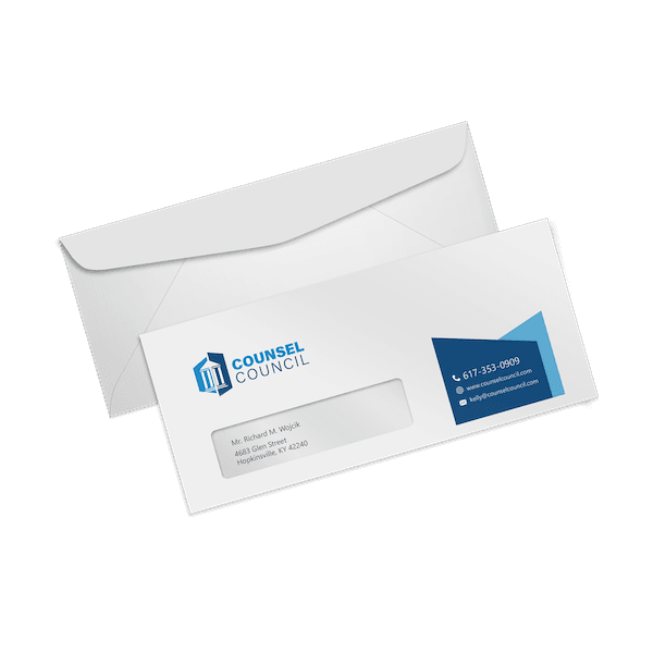 Our custom #10 Envelopes are printed full color, single-sided on 70lb. Premium Offset Opaque Paper.