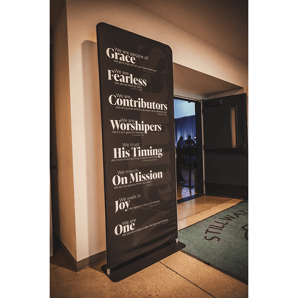 With a modern thin frame and curved corners, our Tension Fabric Stand Displays make for a solid upgrade from standard Retractable Banner Stands.